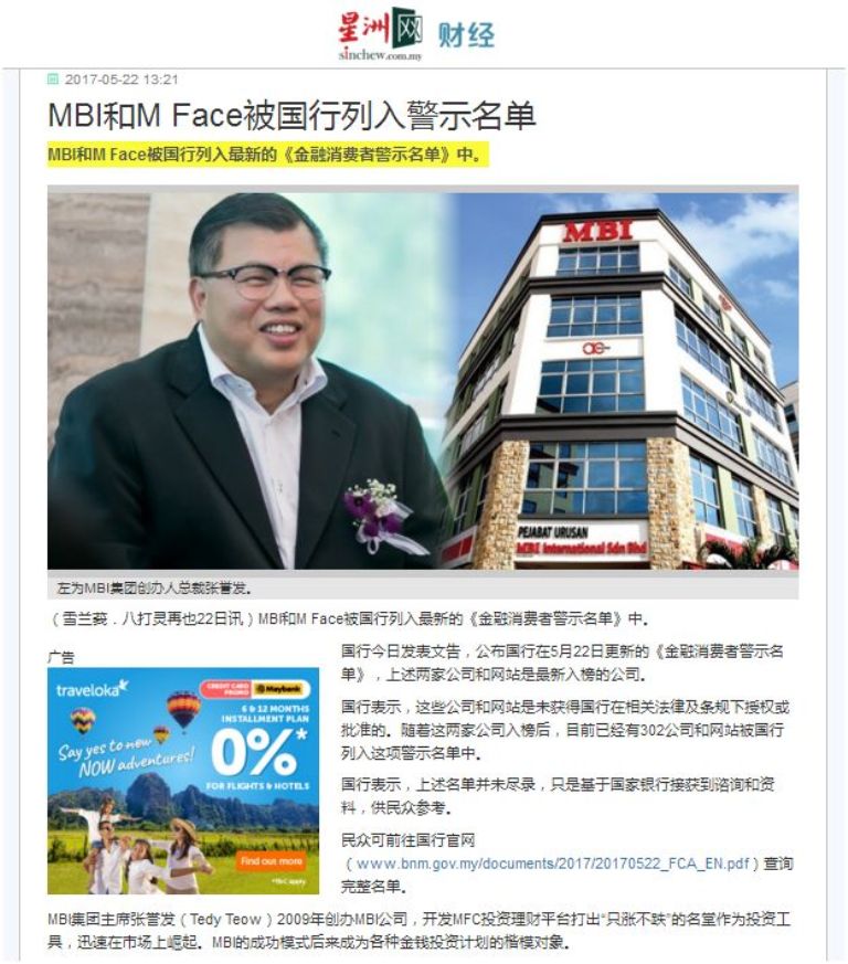 · May 2017 Malaysia Central Bank Bank Negara Malaysia warning list (illegal activity project)