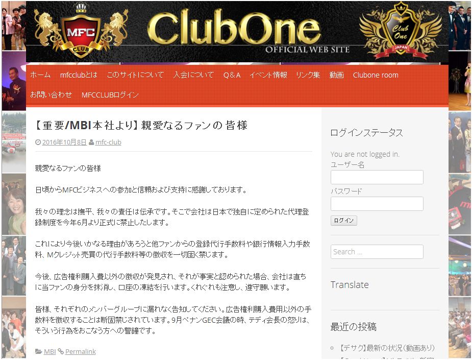· August 2016 South Korea Supreme Court finalized, MFC Club was recognized as an illegal "unregistered multistage organization".